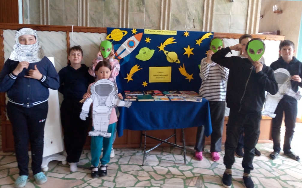 К мероприятию была оформлена книжная выставка " Этот таинственный космос".